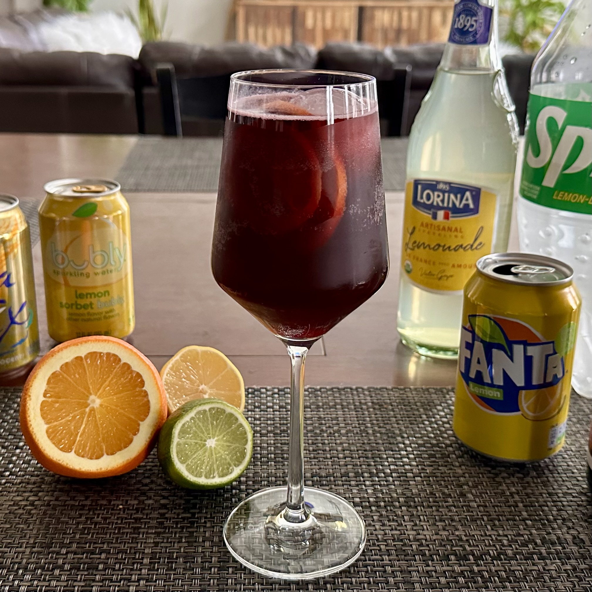 A cold wine cocktail made with red wine and lemon-lime soda